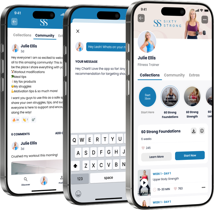 You’re not doing this alone. Inside the 60 Strong community, you’ll find people just like you who are building strength, protecting their joints, and choosing to age on their own terms. Share your wins, ask questions, and get guidance so you always feel supported, encouraged, and understood.