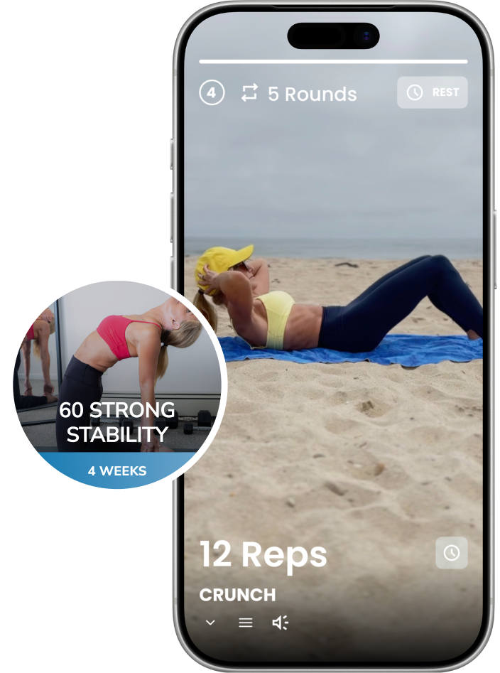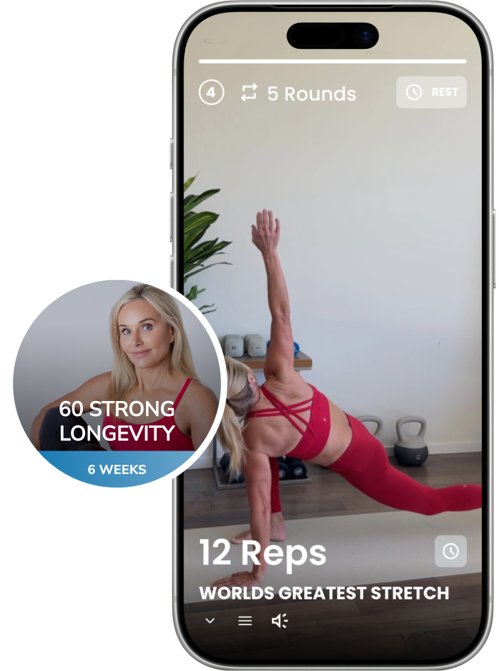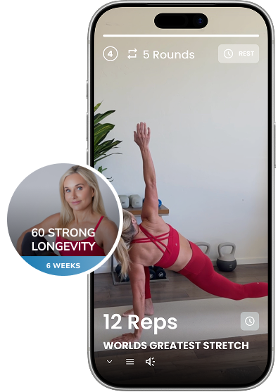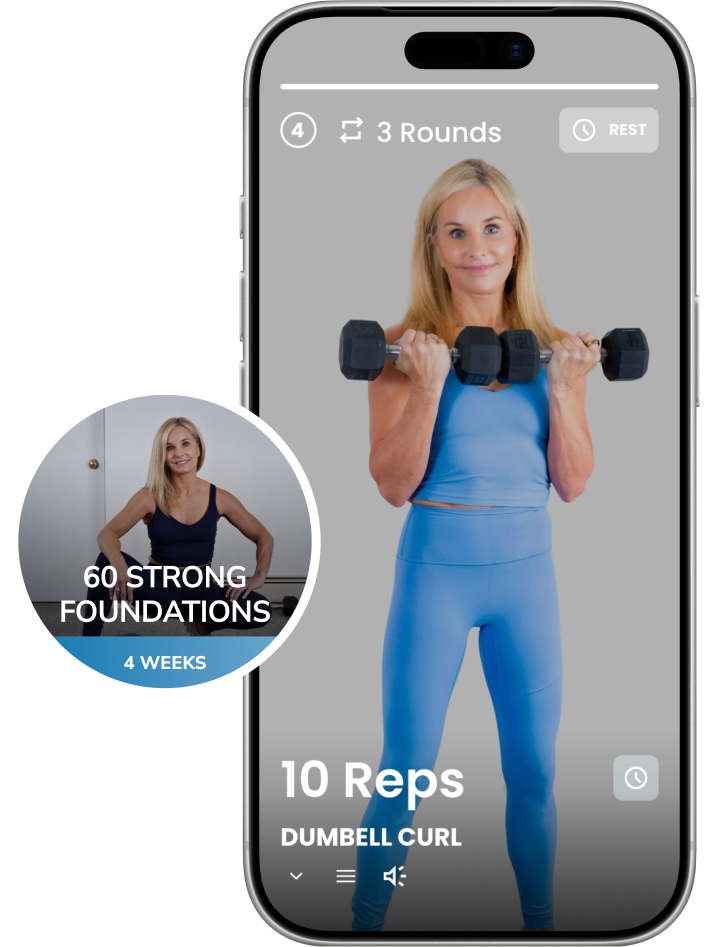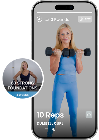 The 60 Strong app gives you step‑by‑step workouts, clear video demonstrations, and expert coaching — all designed specifically for people 60 and beyond. You’ll know exactly what to do each day, how to do it safely, and how to progress at your own pace so your joints feel supported, not stressed.